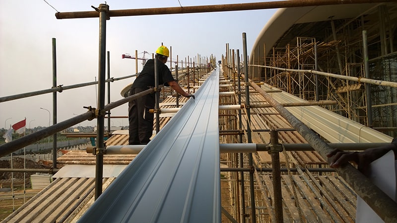 Proses produksi atap Flex-Lok® panjang 102 meter pada bangunan Convention